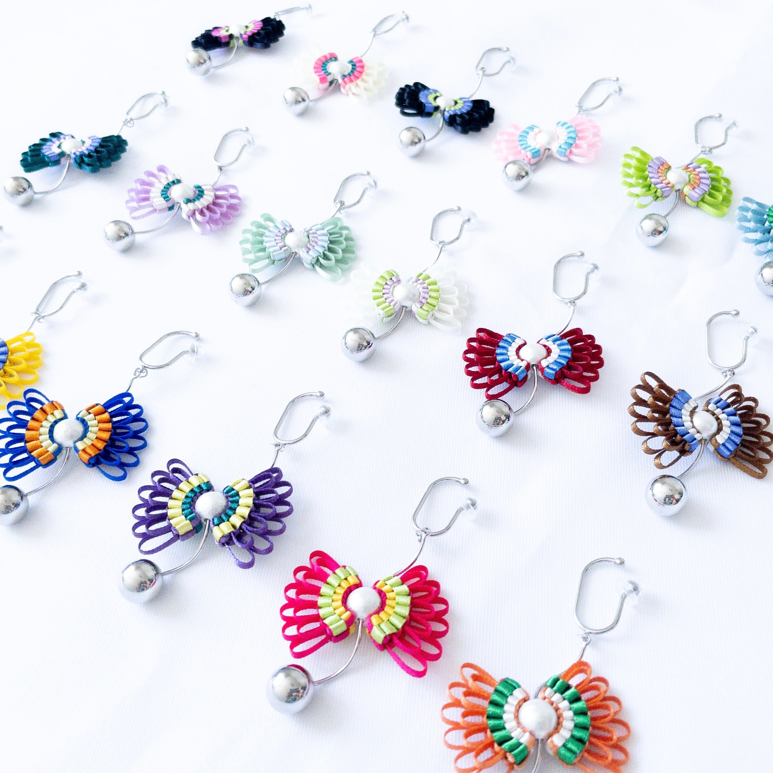 リボンで編んで作るリボンのイヤーカフ。