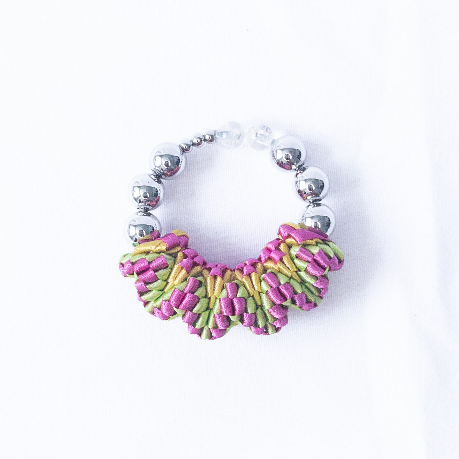 リボンは敢えて固定せず、くるっと回転させることで上下の色を入れ替えたり、編目の模様を変えることができます。(画像3枚目参照)