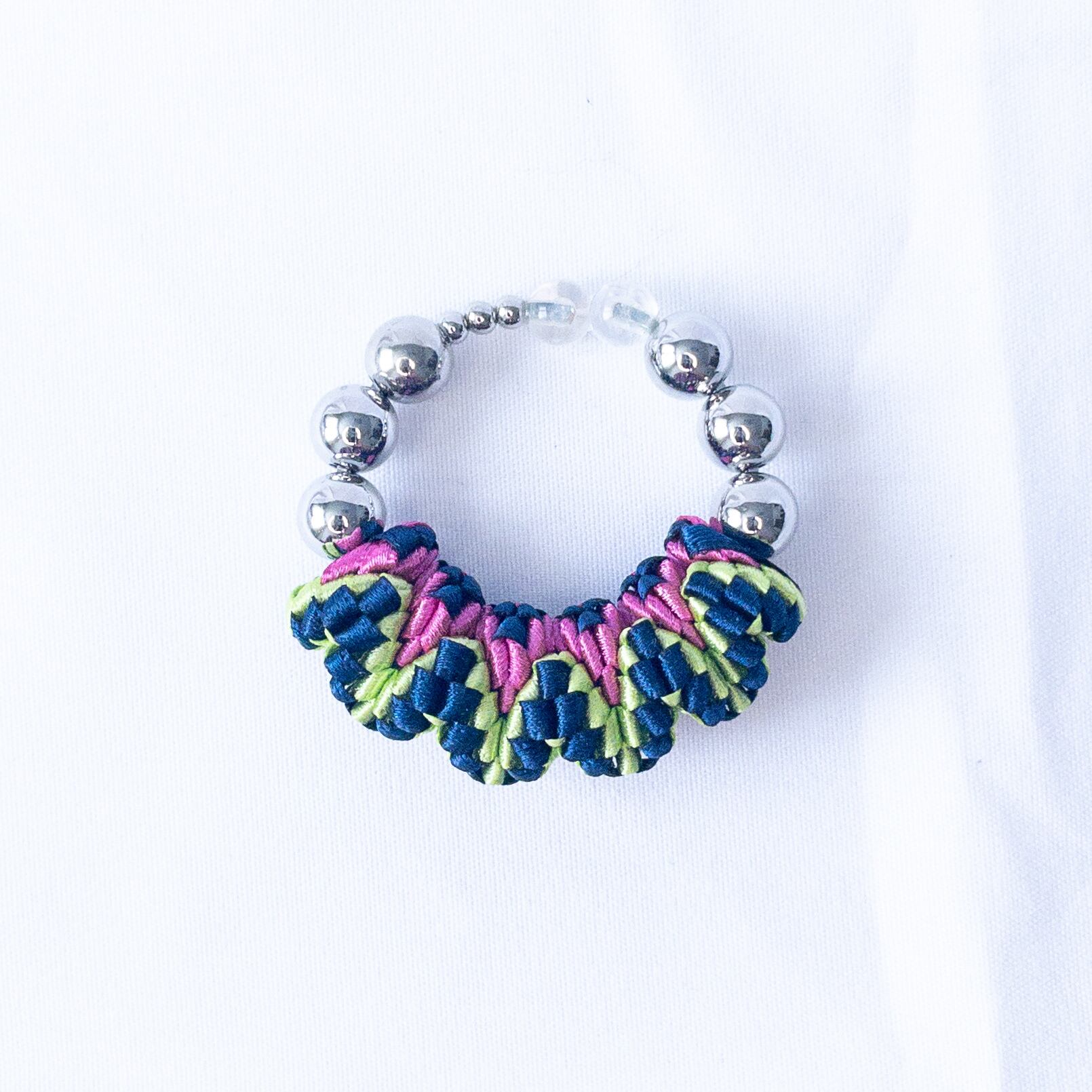 リボンは敢えて固定せず、くるっと回転させることで上下の色を入れ替えたり、編目の模様を変えることができます。(画像3枚目参照)