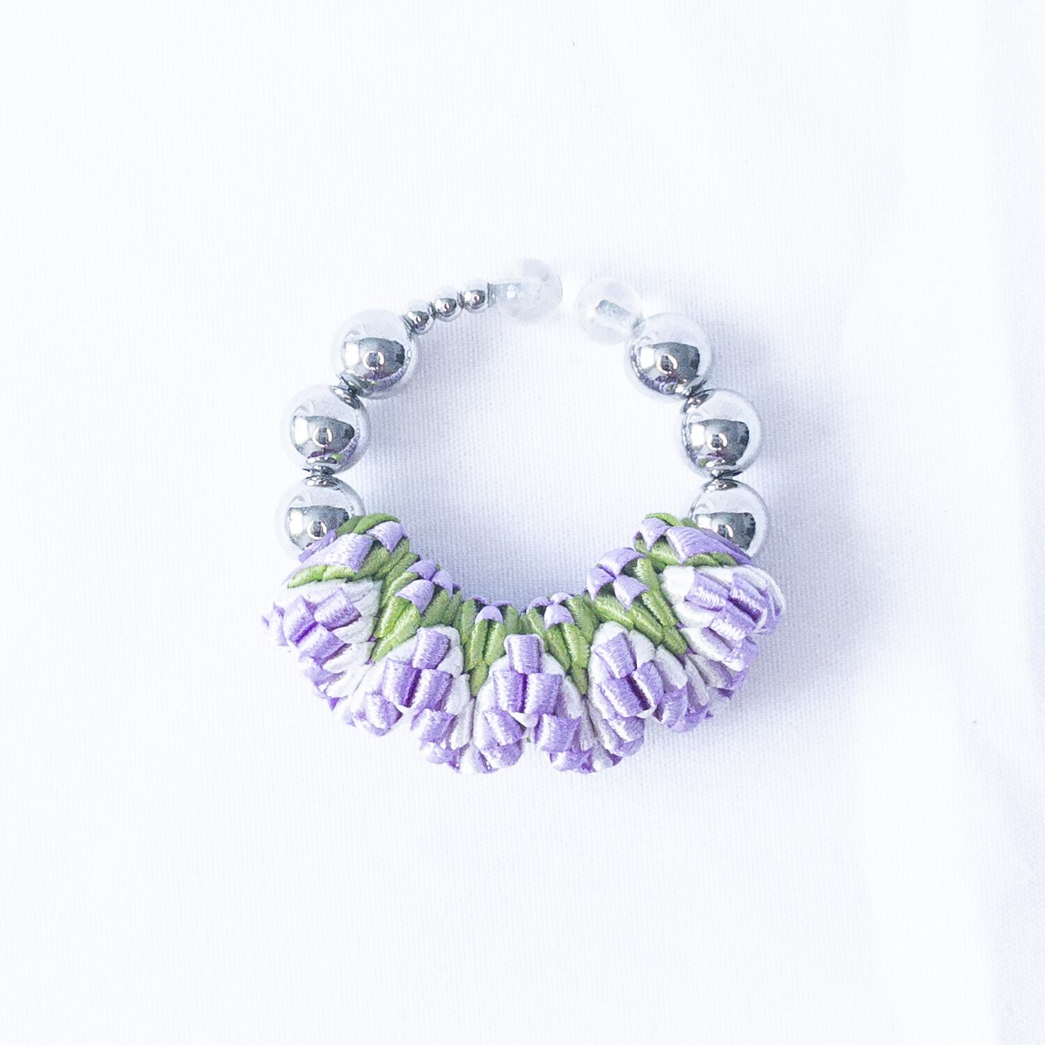 ダブルサテンリボン(ポリエステル)、ワイヤー(合金)、銅玉(ABS樹脂)、アクリル玉