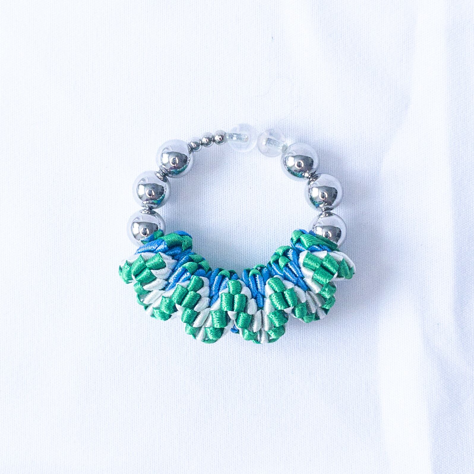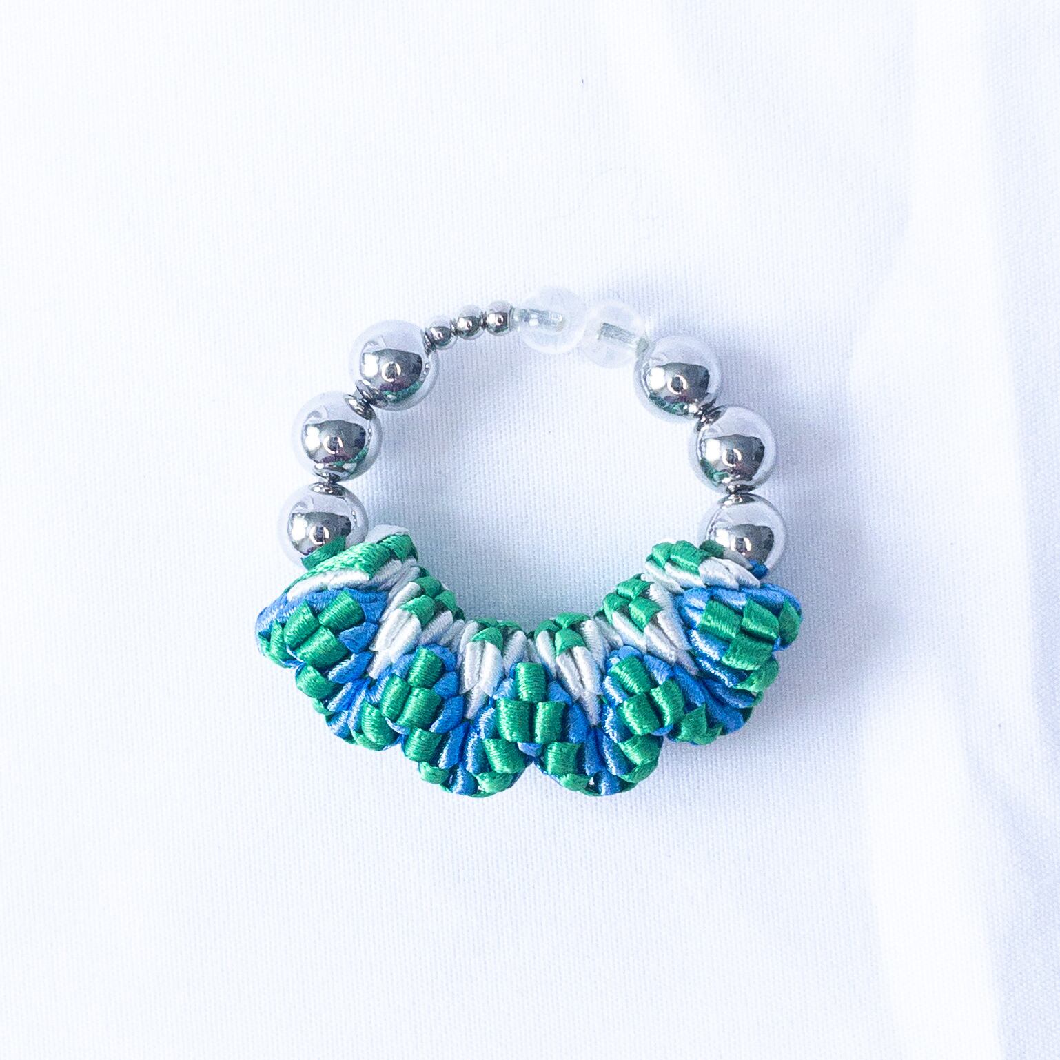 リボンは敢えて固定せず、くるっと回転させることで上下の色を入れ替えたり、編目の模様を変えることができます。(画像3枚目参照)