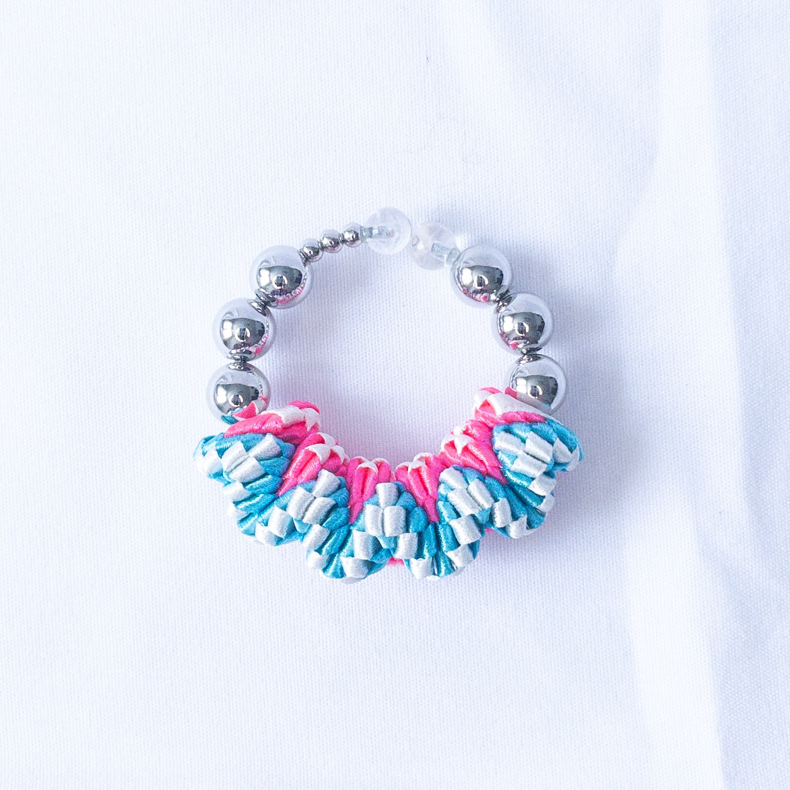 リボンは敢えて固定せず、くるっと回転させることで上下の色を入れ替えたり、編目の模様を変えることができます。(画像3枚目参照)
