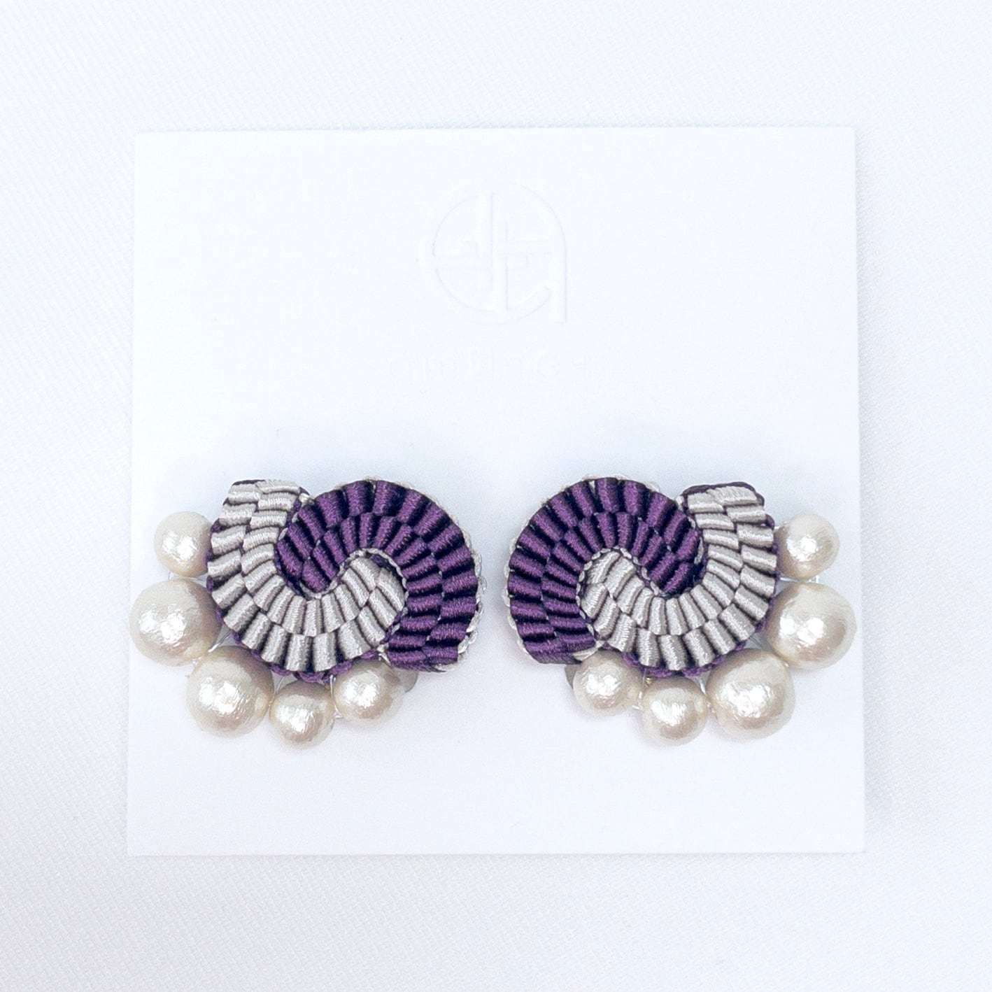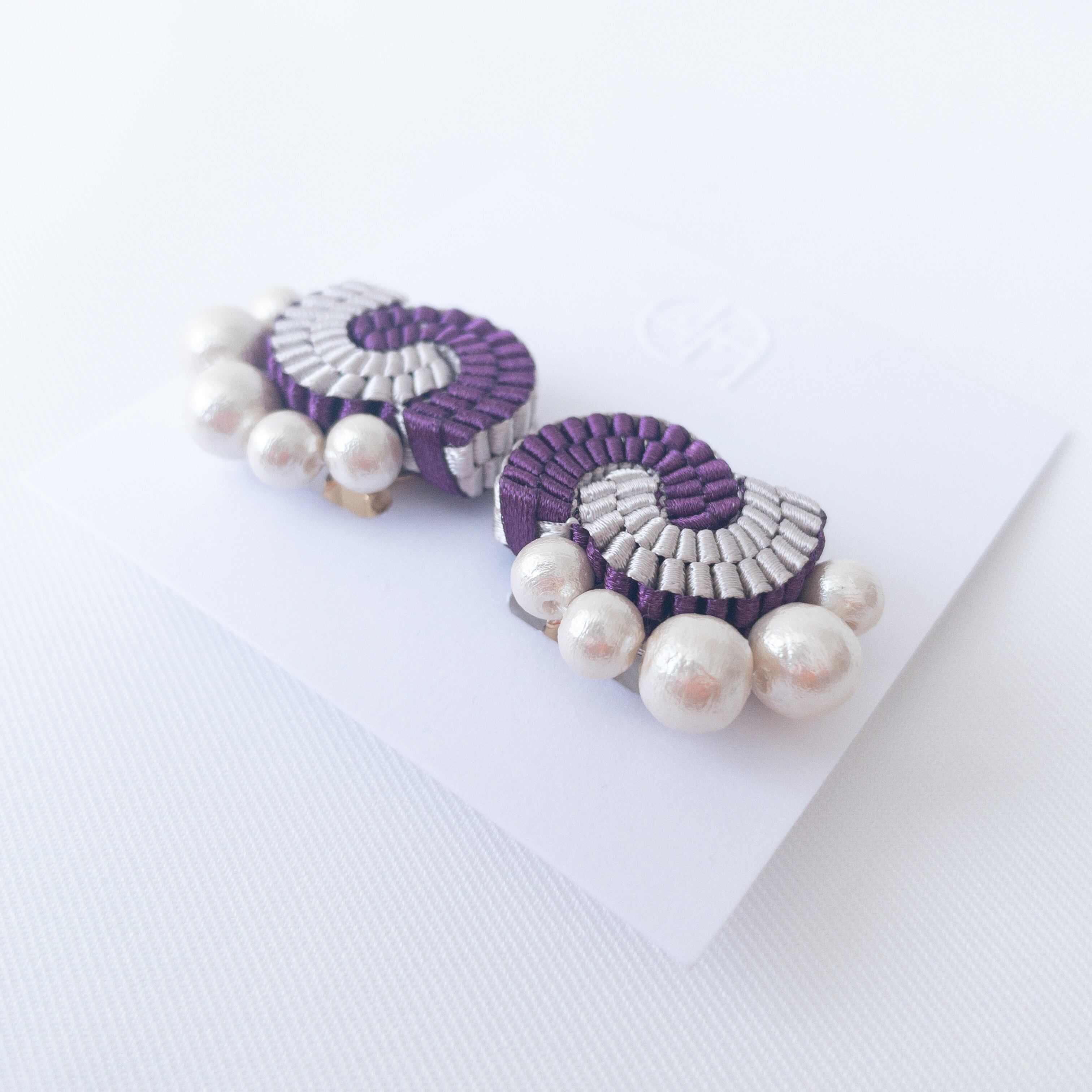 ダブルサテンリボン(ポリエステル)、コットンパール、ナイロンテグス、ポリエステル糸、レジン(裏面)
