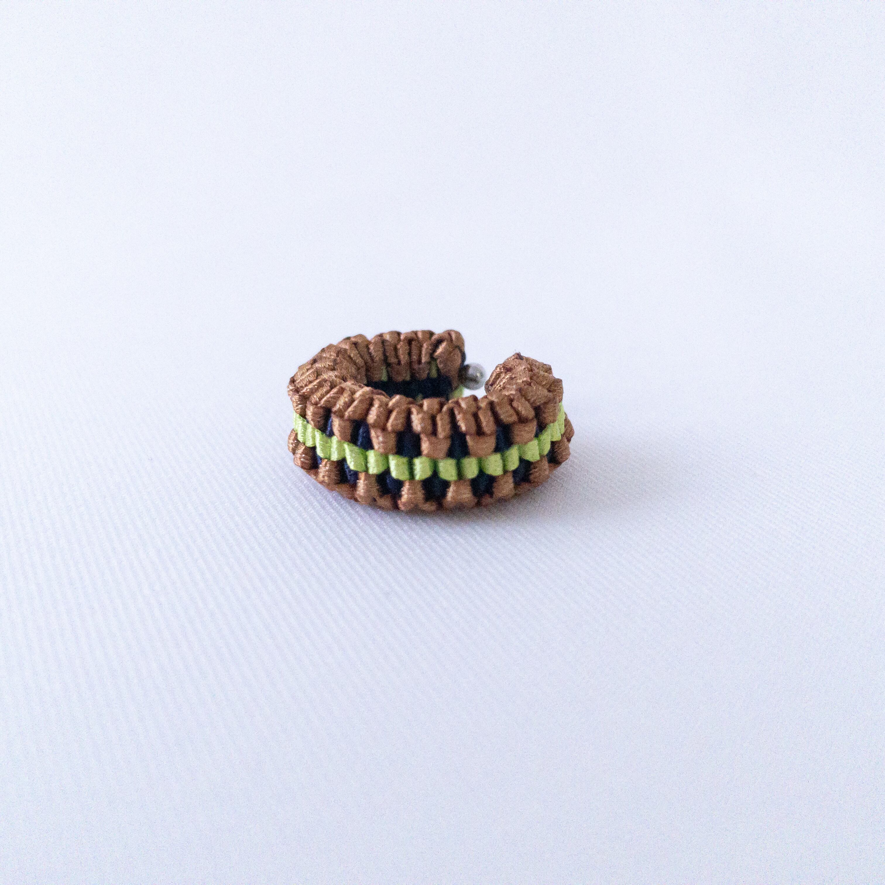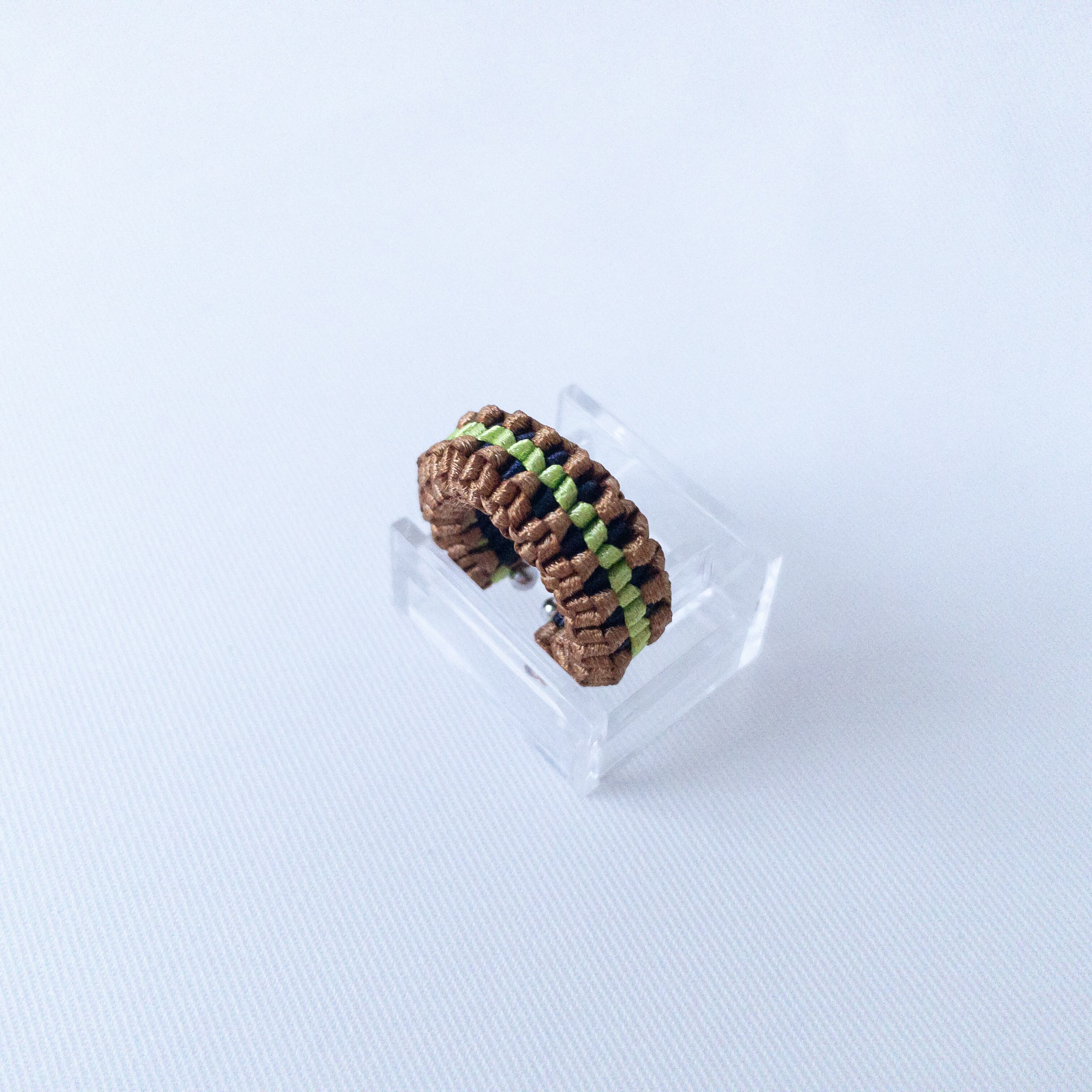 リングとイヤーカフの2way仕様で、リボンのみで編み上げたシンプルなデザイン。
