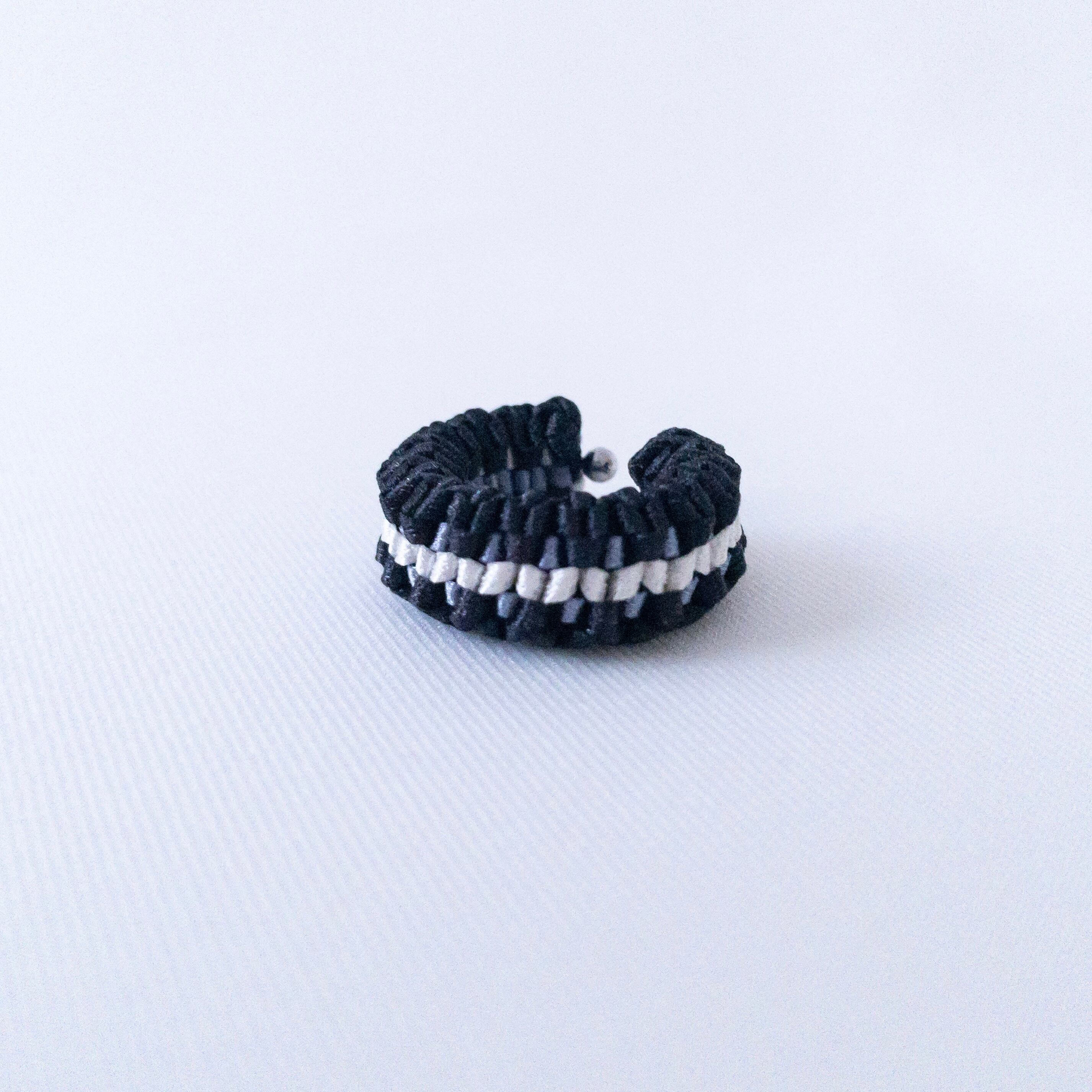 リングとイヤーカフの2way仕様で、リボンのみで編み上げたシンプルなデザイン。