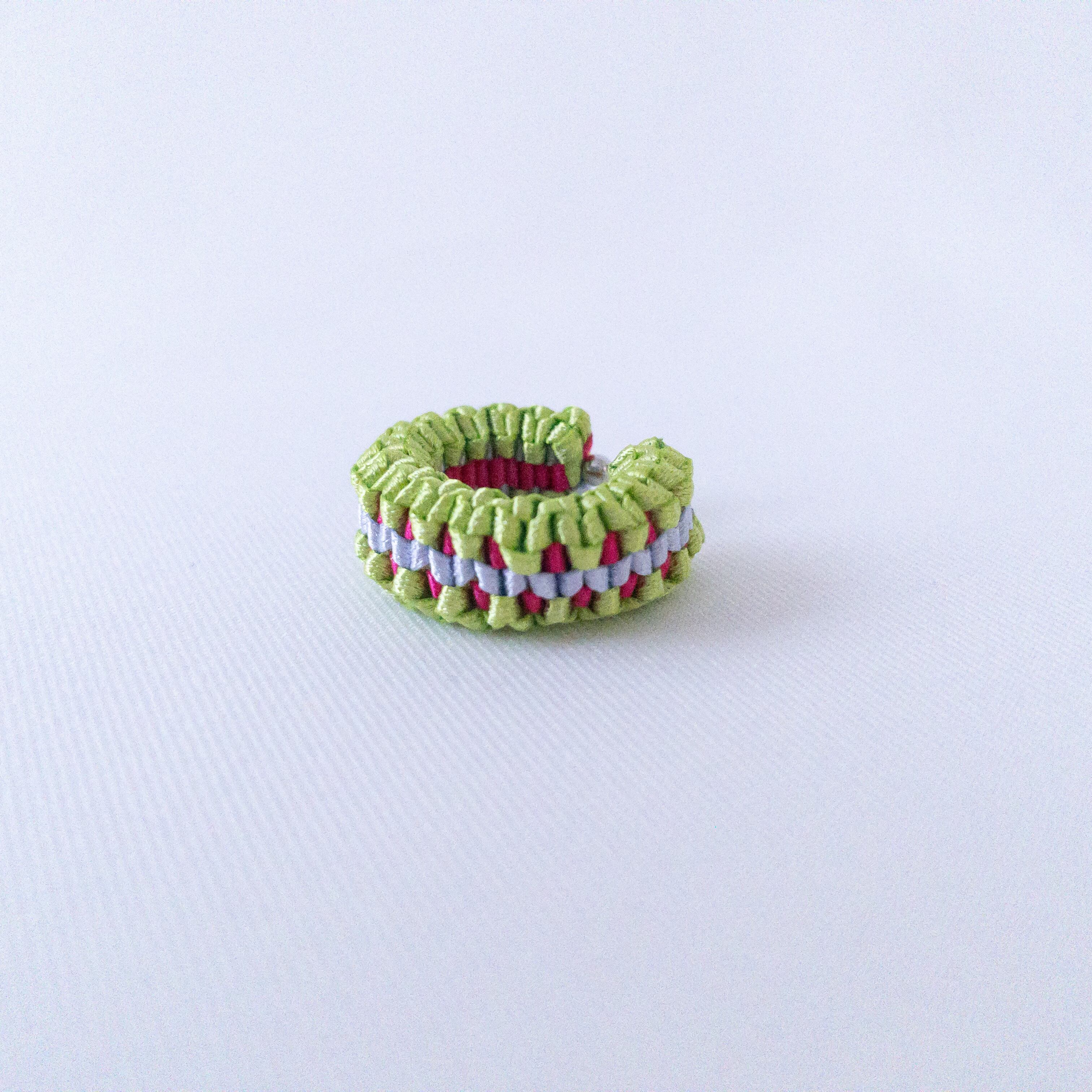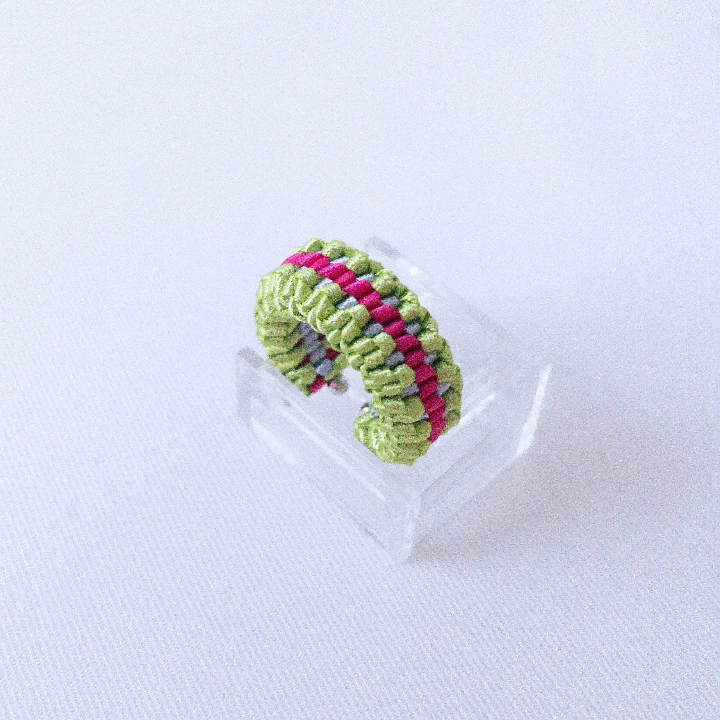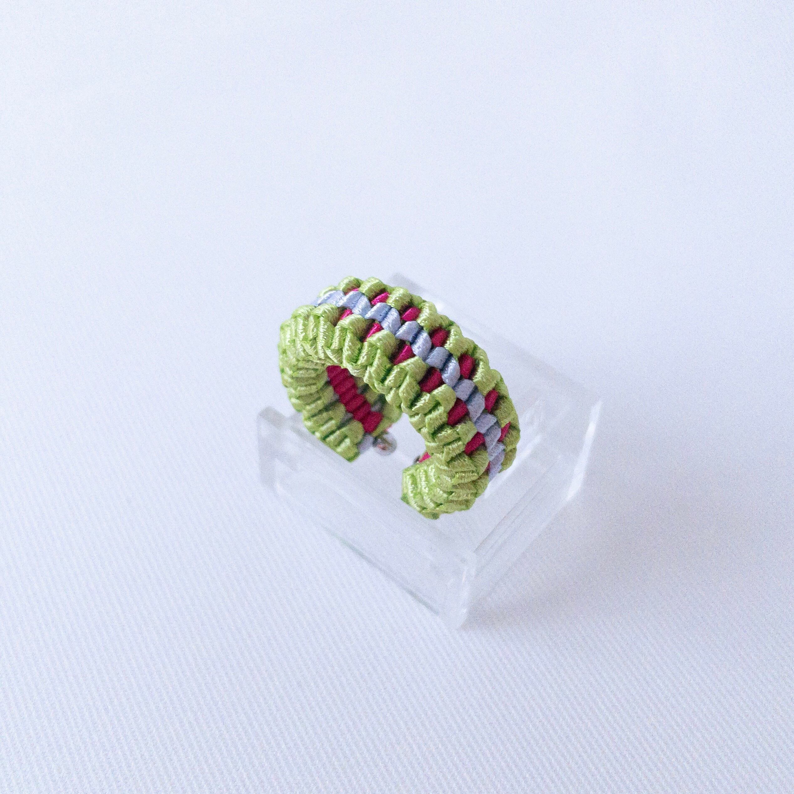 リングとイヤーカフの2way仕様で、リボンのみで編み上げたシンプルなデザイン。